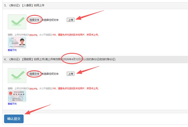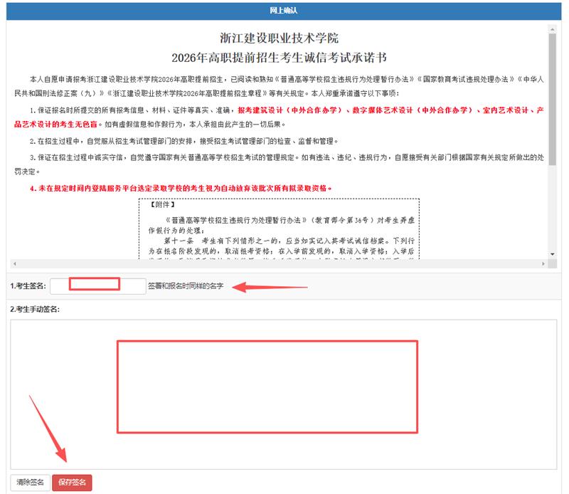 3.仔细阅读《浙江建设职业技术学院2026年高职提前招生考生诚信考试承诺书》,在线进行承诺。随后将身份证正反面照片(确保清晰可见,有效期在2026年4月12日及以后的身份证或临时身份证)上传并确认提交。