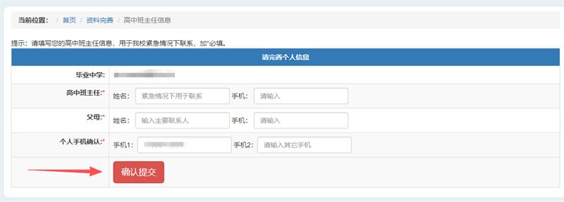 2.完善个人资料,带\号为必填项,请务必真实准确填写,完成后点击“确认提交”。