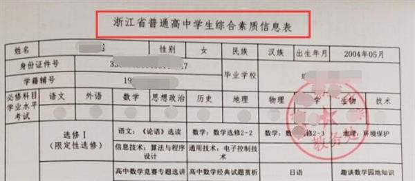 (三)加盖所在中学教务部门公章的《浙江省普通高中学生综合素质信息表》(浙江省普通高中学生综合素质评价系统打印)1份。